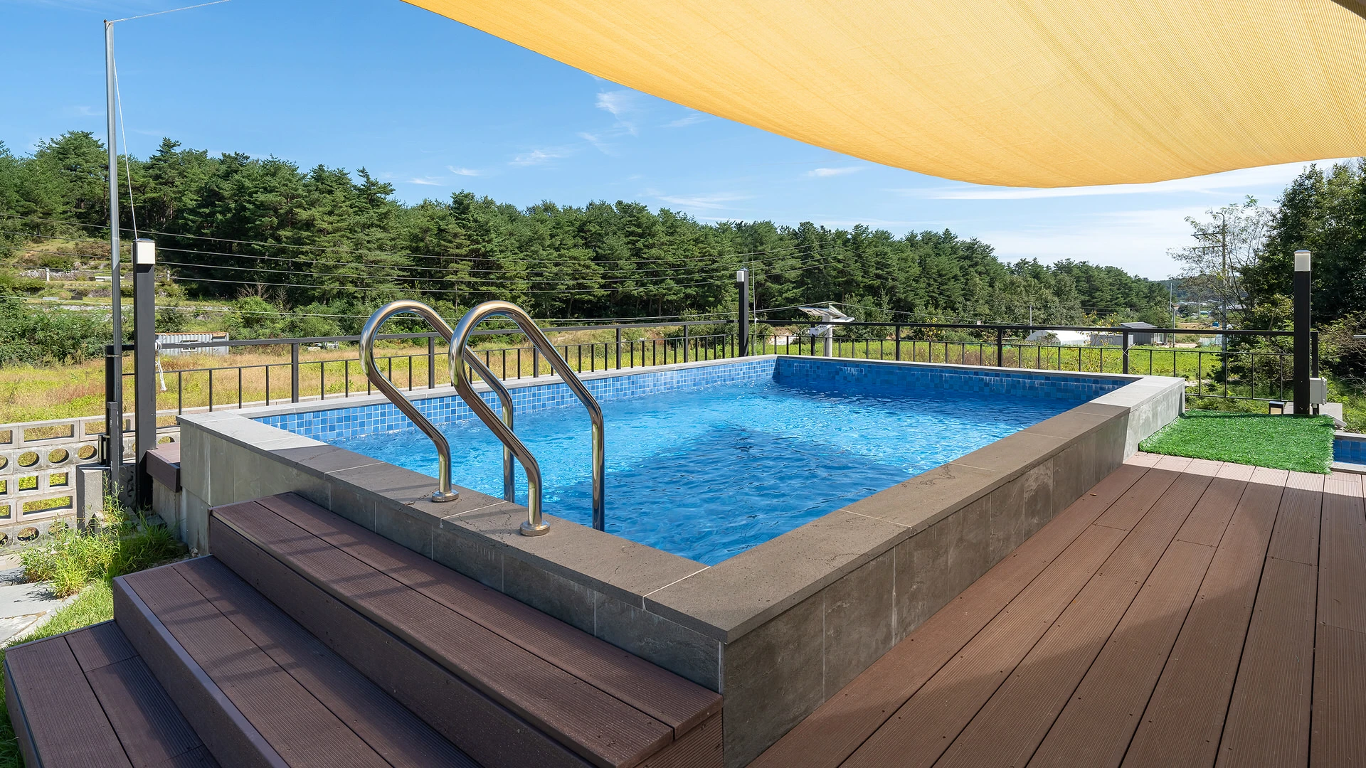 실외 공용 수영장 넓고 깨끗한 수영장에서 신나는 여름을 만끽하세요! ※ 자세한 사항은 예약안내 참고 부탁드립니다.